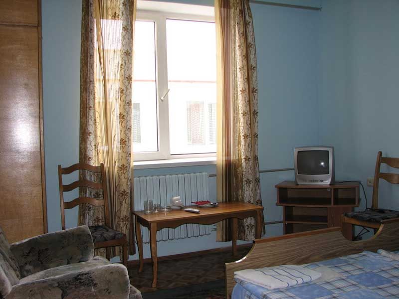 Бюджетный вариант для ночлега. Номер на четыре места с отдельными односпальными кроватями. В номере также имеются шкаф, тумбочки, холодильник, телевизор, умывальник.